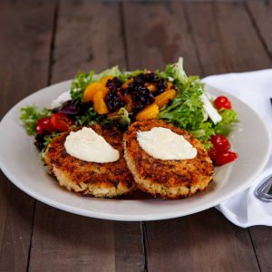 *add salmon +14, crab cake +12, chicken +10 to salad